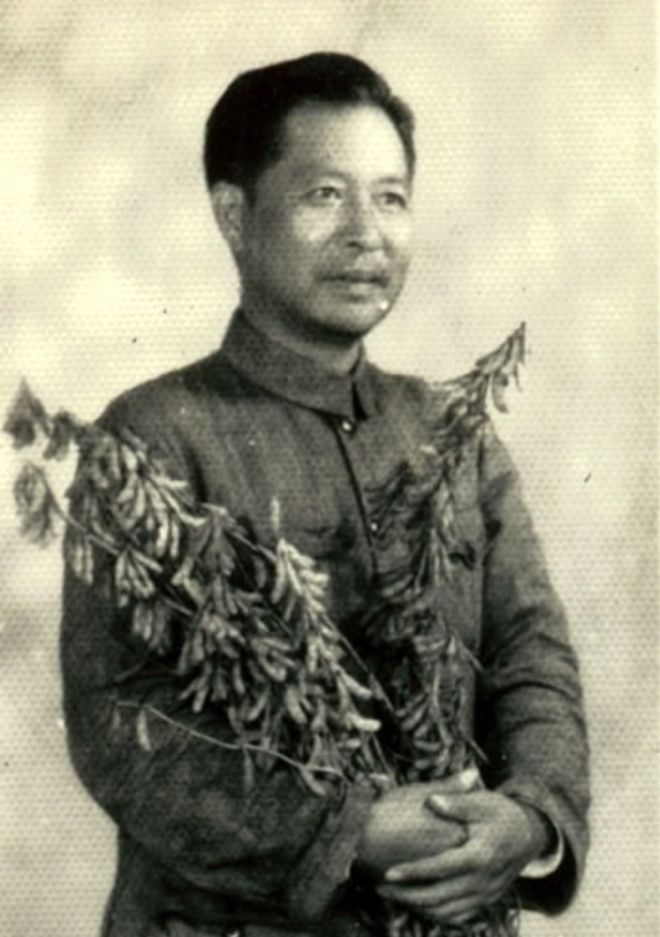 与大豆新品种“南农493-1”合影的老者,是我国著名大豆育种专家马育华。他不仅培育出高产优质大豆品种“南农493-1”,还创立了南京农学院大豆研究所,该所当时是我国南方地区大豆研究的重要中心,后发展成“国家大豆改良中心”。