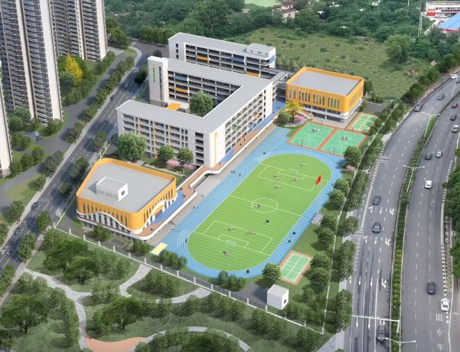 学校采用“一校两址”办学模式,两大校区直线+米,遵循五统一原则,实行100%零差异化办学。